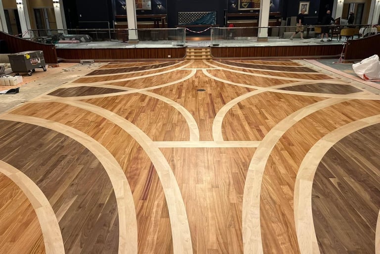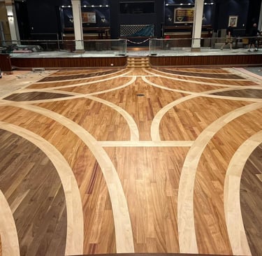 We carried out extensive flooring works within a large event hall at UCL. The project involved the installation of high-quality timber flooring, designed to withstand heavy use while maintaining a refined finish. Careful preparation and precise fitting ensured a durable surface that complements the character of the historic building and provides a practical, long-lasting solution for university events.